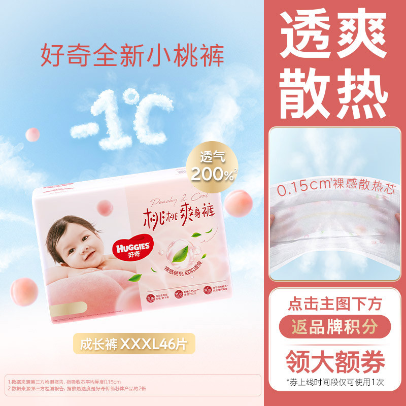 好奇 铂金装桃桃裤成长裤拉拉裤L100/XL84/XXL100/3XL46片新老随机