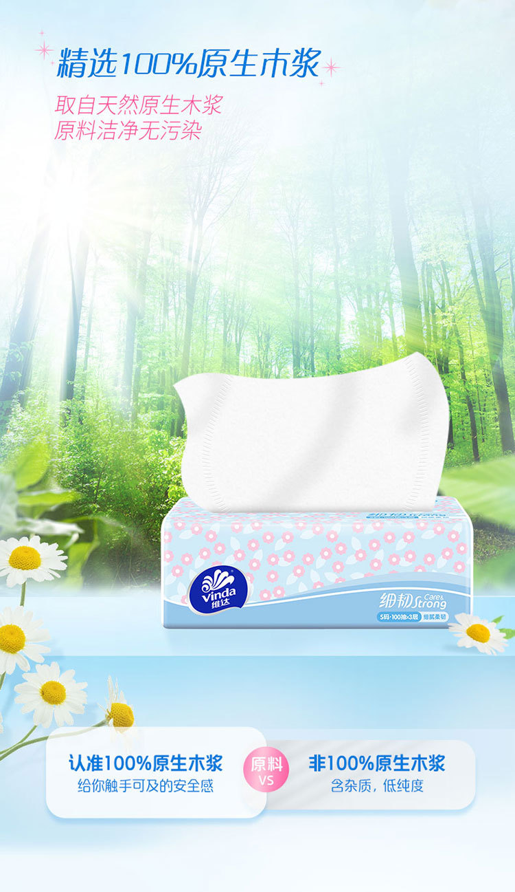 维达 【足量40包】抽纸细韧3层100抽软抽面巾纸餐厅纸卫生纸巾家用整箱 【售价】:¥46 下单链接: