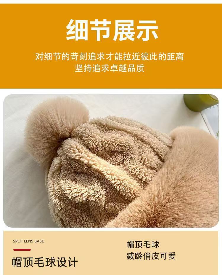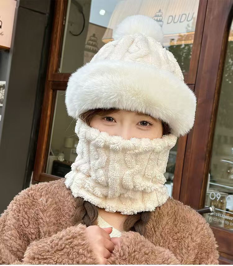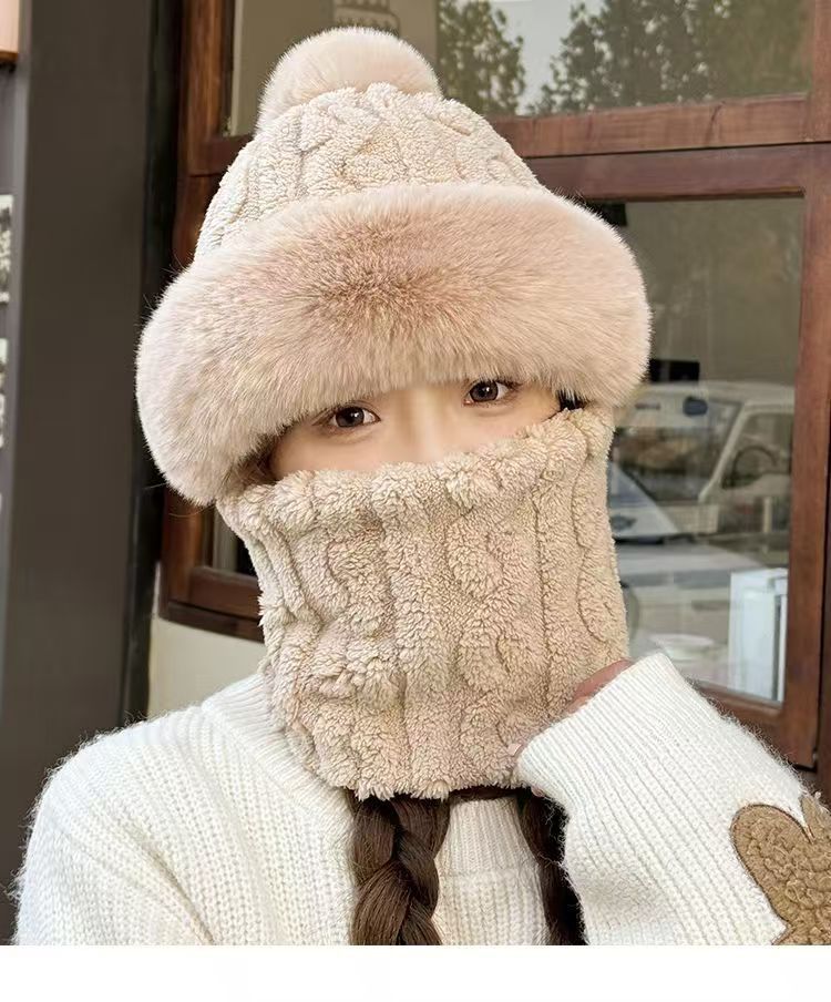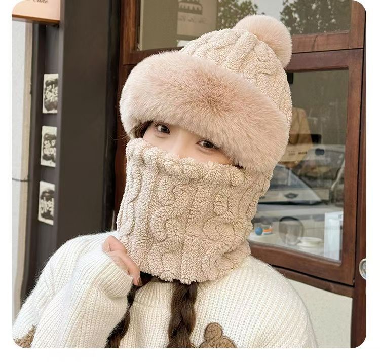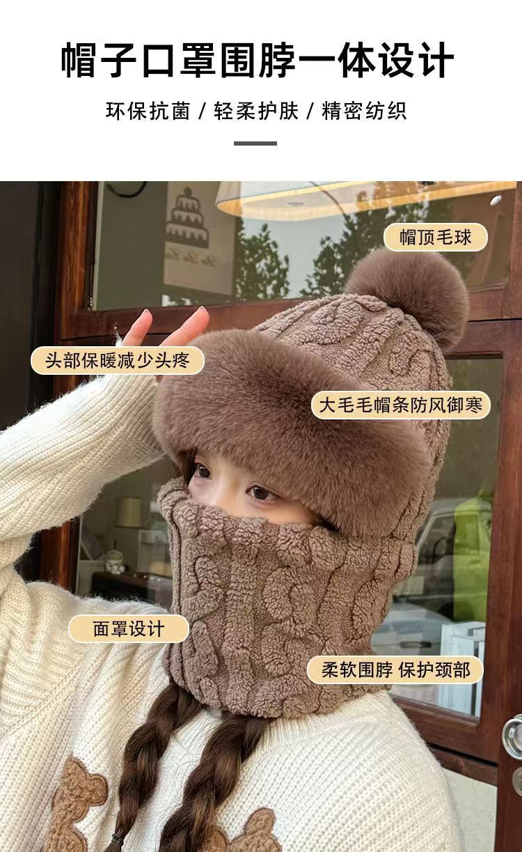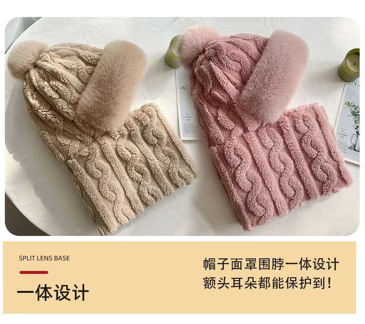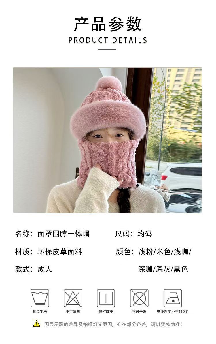 晟琬琪 帽子围脖一体女冬加绒加厚骑车防风防寒电动车保暖套头帽