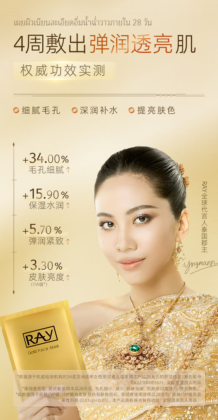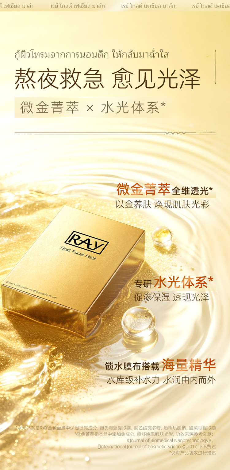 RAY 泰国进口补水面膜保湿提亮肤色收缩毛孔提拉紧致去黄暗沉晒后修护