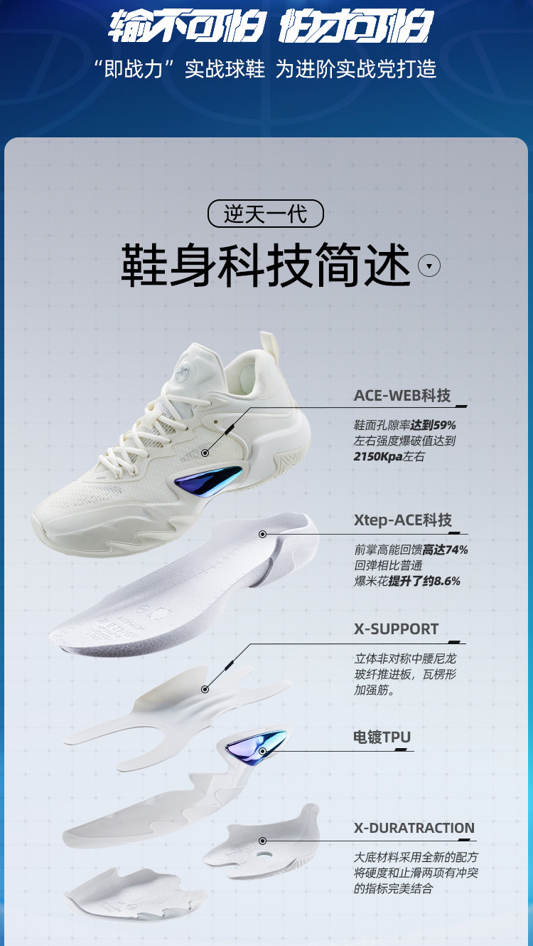 特步 【逆天一代】篮球鞋男透气强韧抗扭转回弹科技耐磨运动鞋学生球鞋 【售价】:¥94 下单链接:
