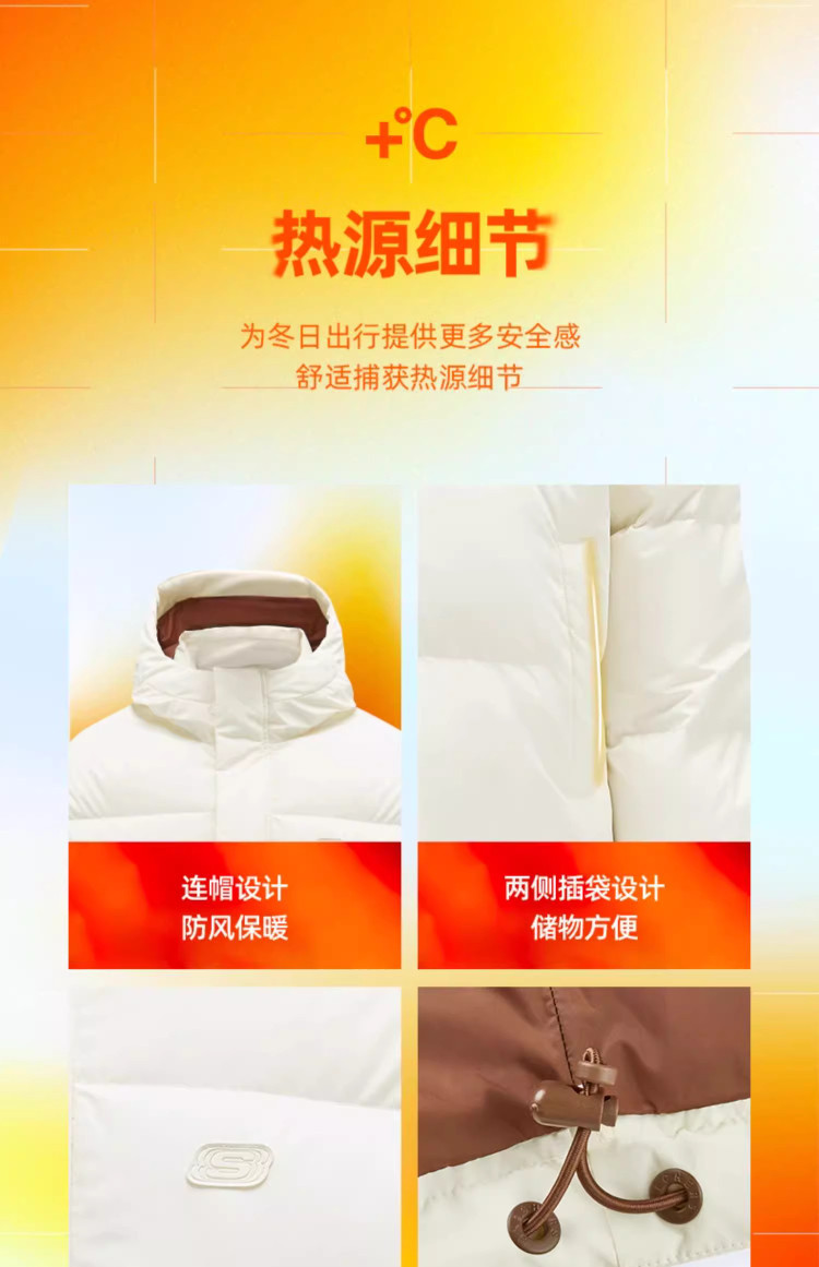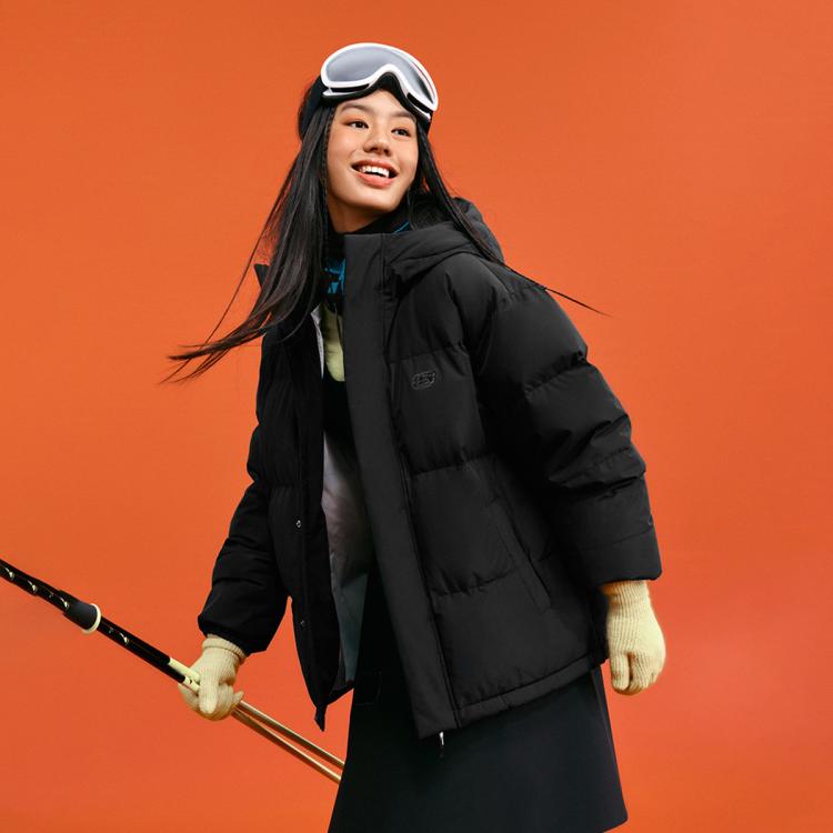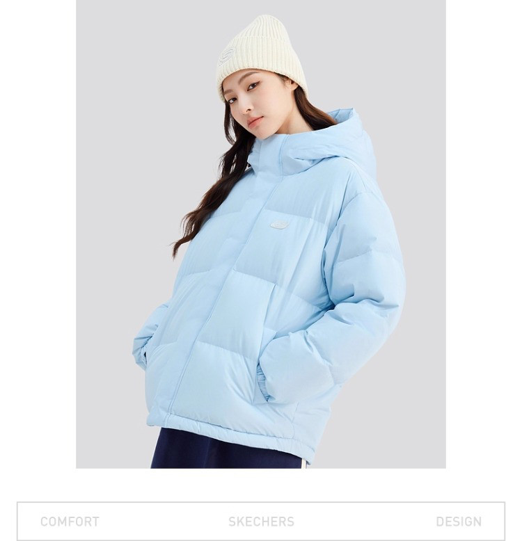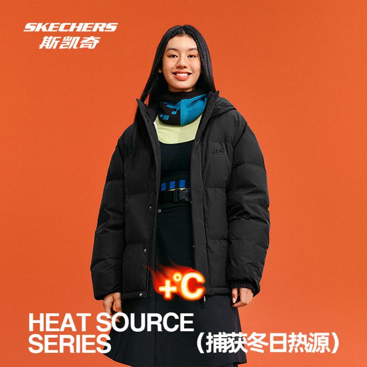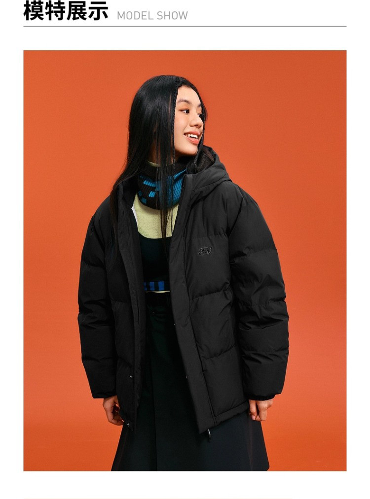 斯凯奇 秋冬连帽羽绒服男女款户外保暖短款羽绒服外套