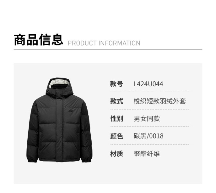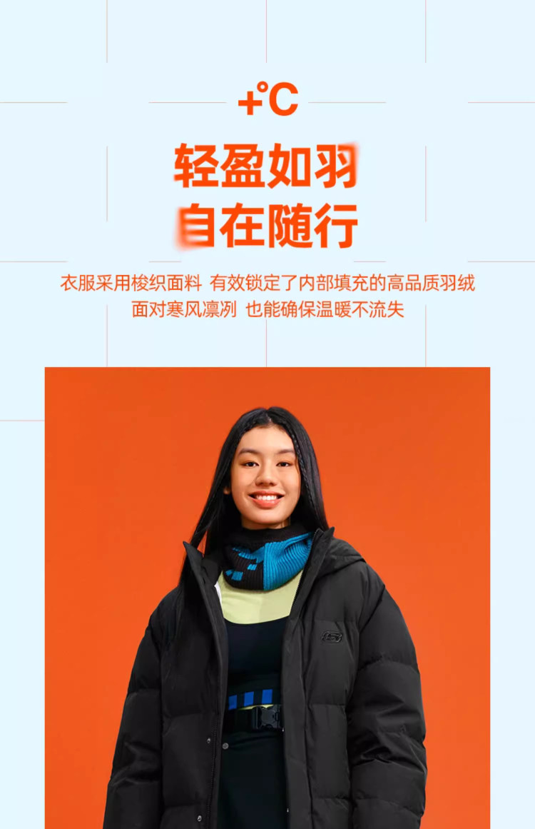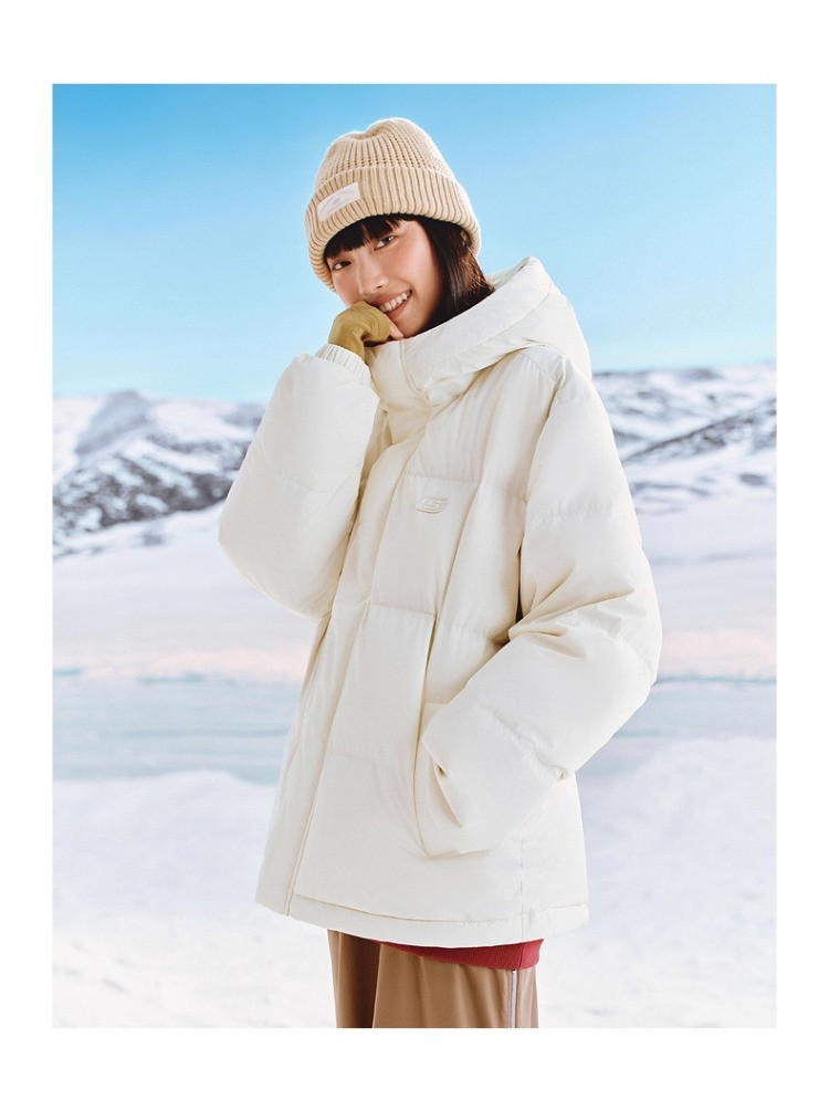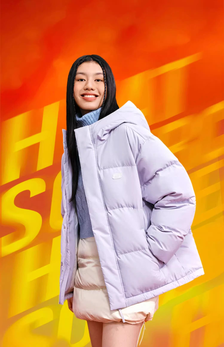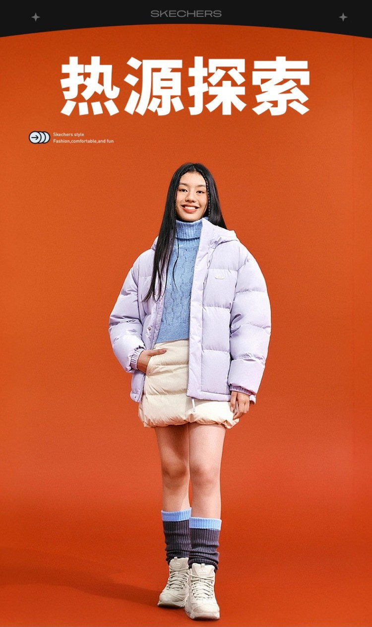 斯凯奇 秋冬连帽羽绒服男女款户外保暖短款羽绒服外套