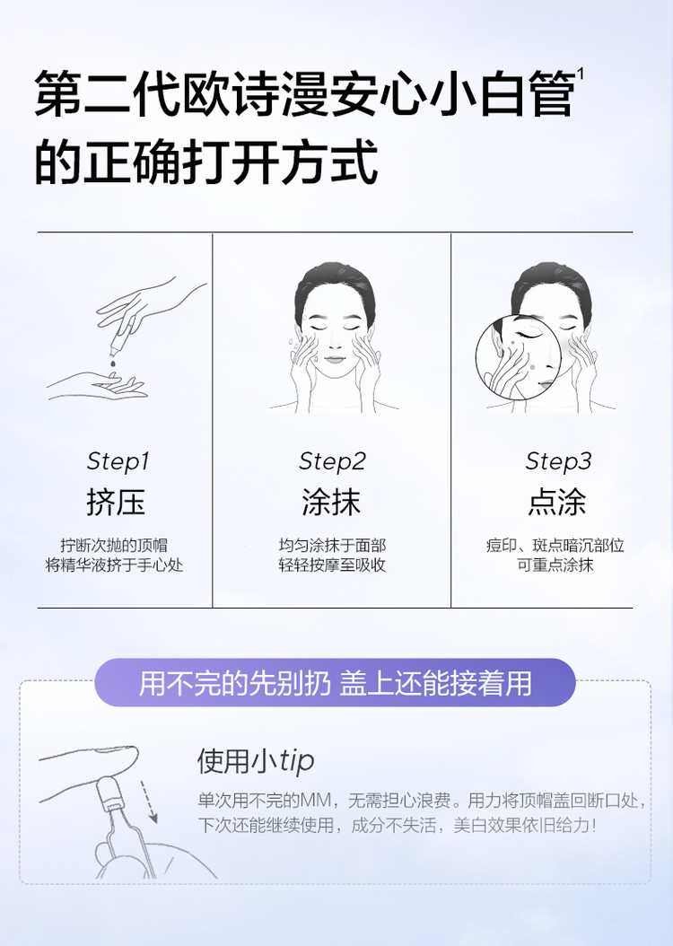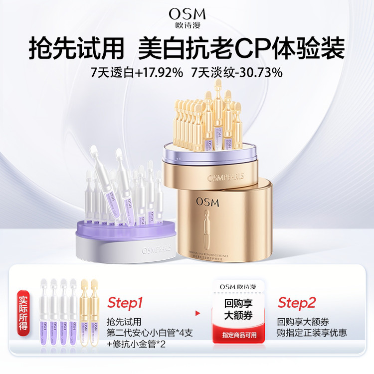欧诗漫 【欧诗漫】美白修护次抛组合安心小白管4支+修抗小金管2支 【售价】:¥12 下单链接: