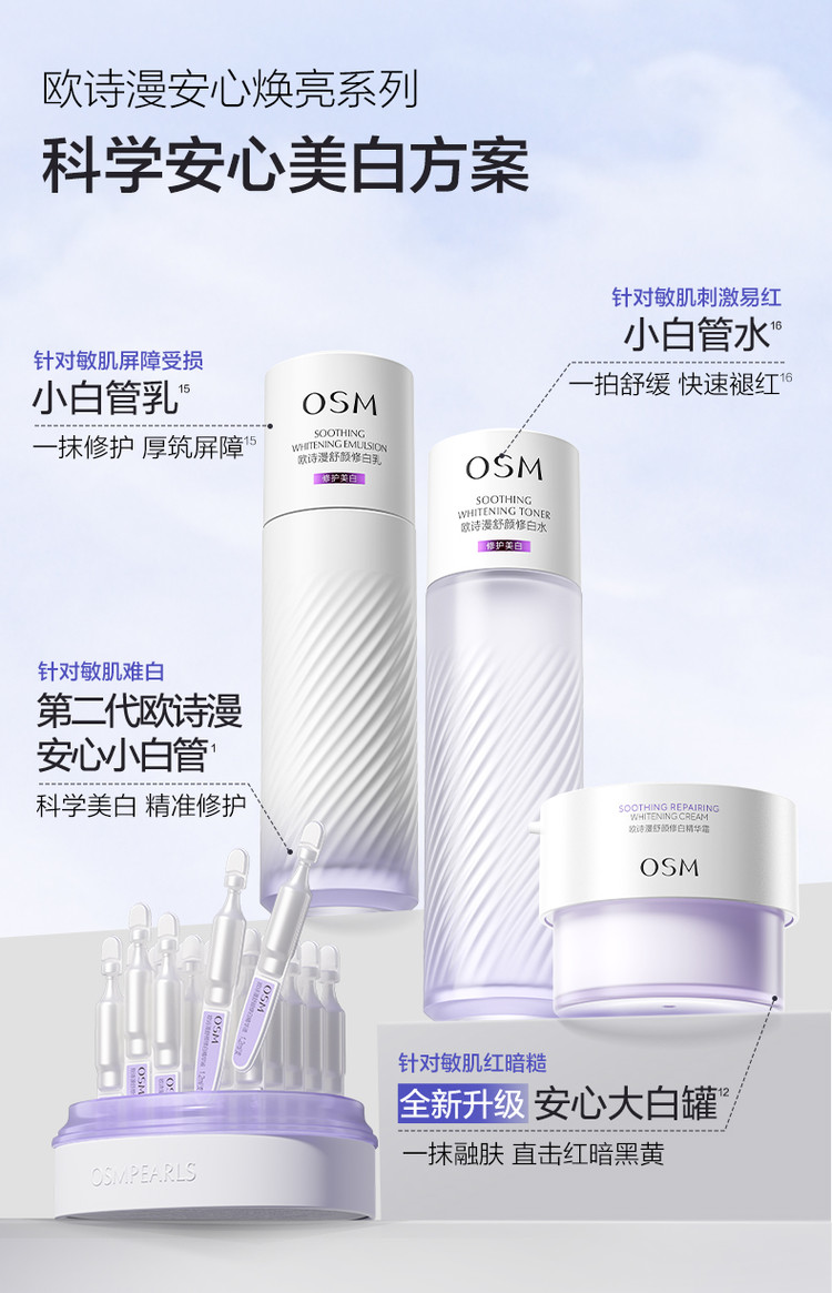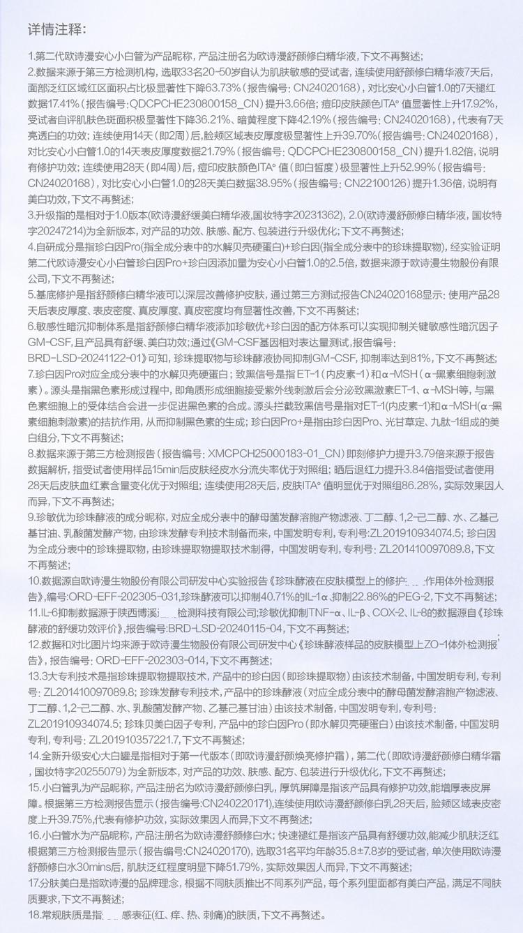 欧诗漫 【欧诗漫】美白修护次抛组合安心小白管4支+修抗小金管2支