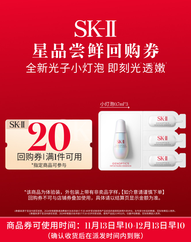 SK-II 光子小灯泡0.7ml*3美白淡斑提亮精华护肤品 【售价】:¥16 下单链接: