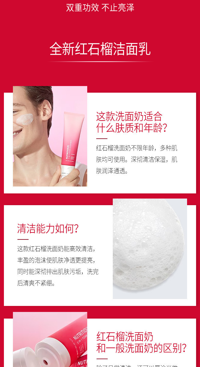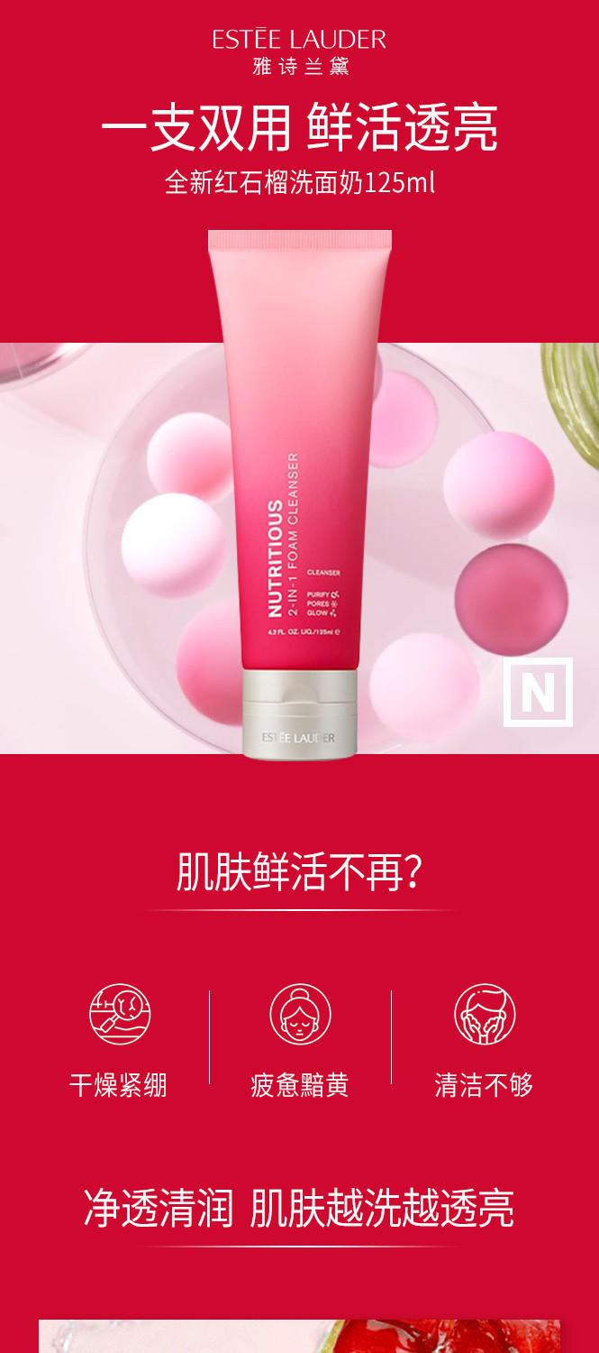 雅诗兰黛 鲜活亮采红石榴洁面乳深层清洁净透保湿 【售价】:¥109 下单链接: