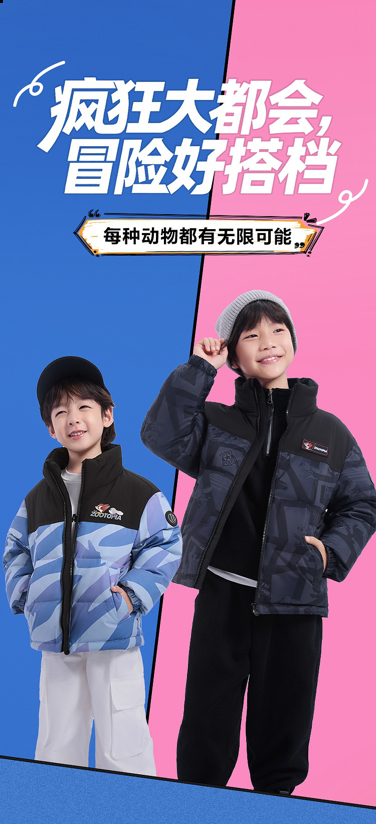 波司登 【疯狂动物城合作款】儿童羽绒服男女童立领时尚运动保暖外套